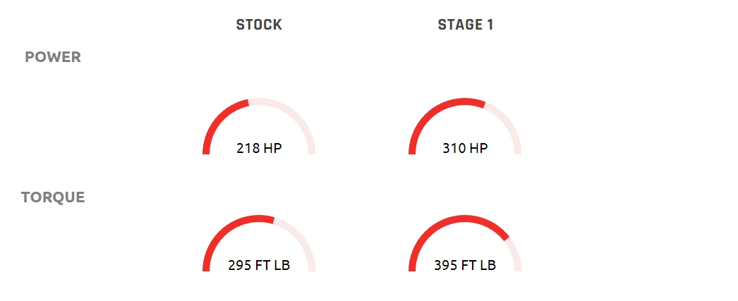 Stage 2 requires suitable hardware modifications to be eligible. Power figures are typical, but can change pending a variety of hardware/environmental factors.